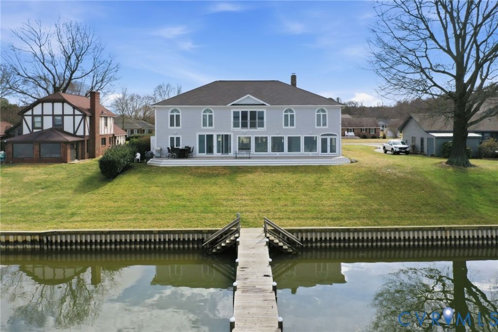 Experience exceptional riverfront living in this expansive 5,036 sq. ft. Colonial-style home, built in 2007 and set on a 0.43-acre waterfront lot with sweeping views of the Rappahannock River. A bulkhead provides shoreline protection, while a private dock-complete with a remote-controlled boat lift and two additional lifts-offers easy access to the water by boat or jet ski. A community boat ramp and beach is also nearby. Inside, the open floor plan showcases unobstructed riverfront views, hardwood flooring, soaring cathedral ceilings, and custom built-in bookcases. The spacious kitchen features granite countertops, newly installed wall double ovens, and a gas cooktop-ideal for both everyday living and entertaining. Conveniently located on the second level, the primary suite includes a walk-in closet, double vanity, steam shower, private patio access, and stunning river views. Additional highlights include a dedicated home office, a possible workout room, and a finished basement. The property also offers an attached one-car garage and a paved, recently resealed driveway. Located just four miles from shopping and restaurants in Tappahannock, and within 50 miles of both Richmond and Fredericksburg, this exceptional home combines riverfront living, privacy, comfort, and convenience. Listing agent is related to the seller.