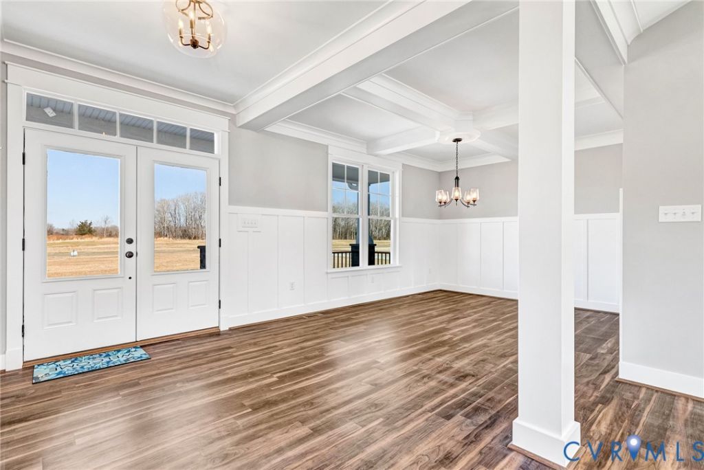 This move-in-ready modern farmhouse is located in Hanover's Leber Estates with HIGH-SPEED Verizon INTERNET sitting on nearly 7 acres of open and wooded land, all just minutes from I-64 and I-295. The custom 2,850 sq ft design blends modern comfort with timeless style. The main level showcases an open layout with 9' ceilings and LVP flooring throughout. A coffered-ceiling dining room leads into the vaulted family room, where a stone gas fireplace and built-ins create an inviting focal point. The chef's kitchen stands out with custom cabinetry, a 10' island, granite countertops, ceramic tile backsplash, Café appliances, a 6-burner gas stove, wall oven/microwave combo, beverage refrigerator, and a custom butler's pantry offering exceptional storage and prep space. The first-floor primary suite provides a private retreat featuring a freestanding tub, walk-in tiled shower with glass enclosure, and a custom walk-in closet. Two additional first-floor bedrooms share a well-appointed bath with granite countertops, a double vanity, and a tiled tub surround. The second floor adds two versatile rooms plus a full bath-ideal for guests, office space, or hobbies. Exterior highlights include a 2+ car garage, metal roof accents, stamped concrete, a conditioned crawlspace, and a 14x12 screened porch perfect for year-round outdoor enjoyment. With a blend of open fields and mature woods, the property offers privacy, recreation opportunities, and the potential for horses.