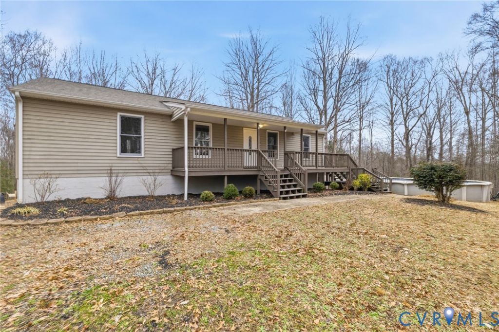 Welcome to peaceful country living in beautiful King William! Nestled on a sprawling 5-acre lot, this charming ranch home with a fully finished walkout basement offers the perfect blend of comfort, space, and privacy. A private gated driveway with coded access adds an extra level of security and exclusivity. Step into a welcoming foyer that opens to an expansive family room filled with tons of natural light, creating a warm and inviting atmosphere. Fresh paint throughout gives the home a bright, move-in ready feel. The open-concept kitchen and dining area flow seamlessly together, ideal for both everyday living and entertaining. The kitchen is equipped with stainless steel appliances, abundant counter and cabinet space, and convenient bar seating. The primary suite features an oversized closet and a private en suite bath complete with a tub/shower combination. Two additional bedrooms offer spacious closets and share a well-appointed full hall bath. Downstairs, the fully finished walkout basement expands your living space with a large recreation area, a convenient half bath, and direct access to the patio, ideal for gatherings or relaxing evenings at home. An attached oversized two-car garage adds functionality and storage. Outdoors, you'll love the incredible space this property provides. Enjoy summer days in the above-ground pool surrounded by decking, all while taking in the peaceful wooded backdrop that offers added privacy. Now is the perfect time to make this home yours and have the pool ready to enjoy by summer. With five beautiful acres to call your own, this property delivers the space and serenity you've been searching for.